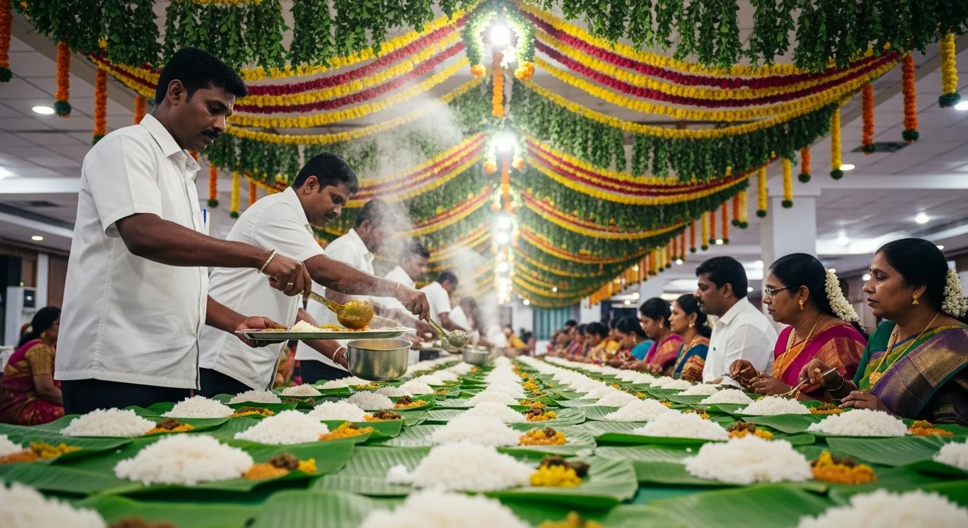 In Chennai, the saapadu is the wedding. I have watched guests at a Mylapore mandapam skip the photo booth, ignore the flower arrangements, and head straight for the banana-leaf dining hall — because in Tamil culture, the food is how a family's hospitality is measured. A wedding where the sambar is flat or the payasam count disappoints will be remembered for the wrong reasons, no matter how expensive the venue or how famous the photographer.