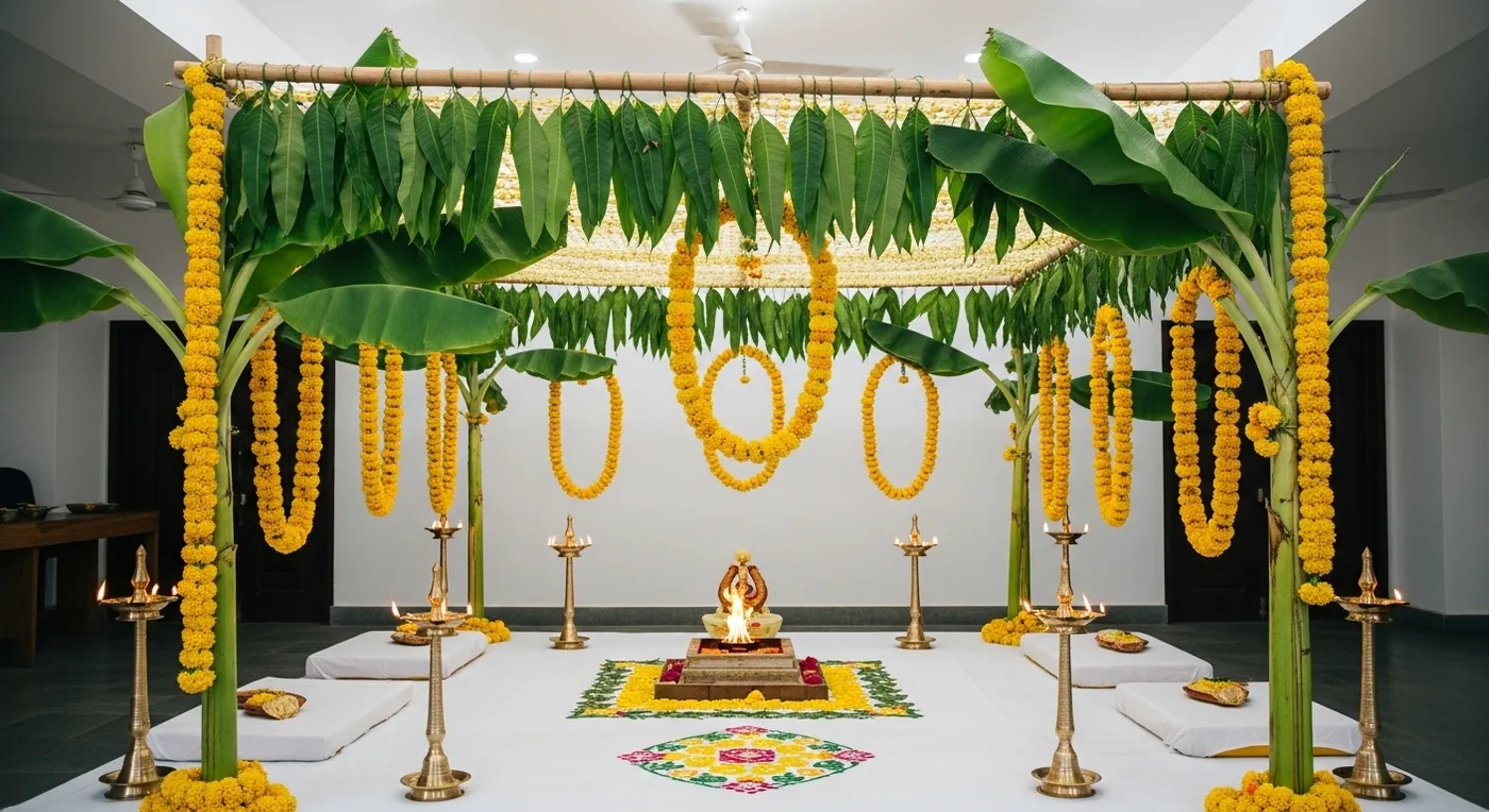 Browse 16 Telugu wedding and pellikuthuru decoration ideas — from traditional banana-stem mandaps to Hyderabadi nawabi stages. Budget tips included.